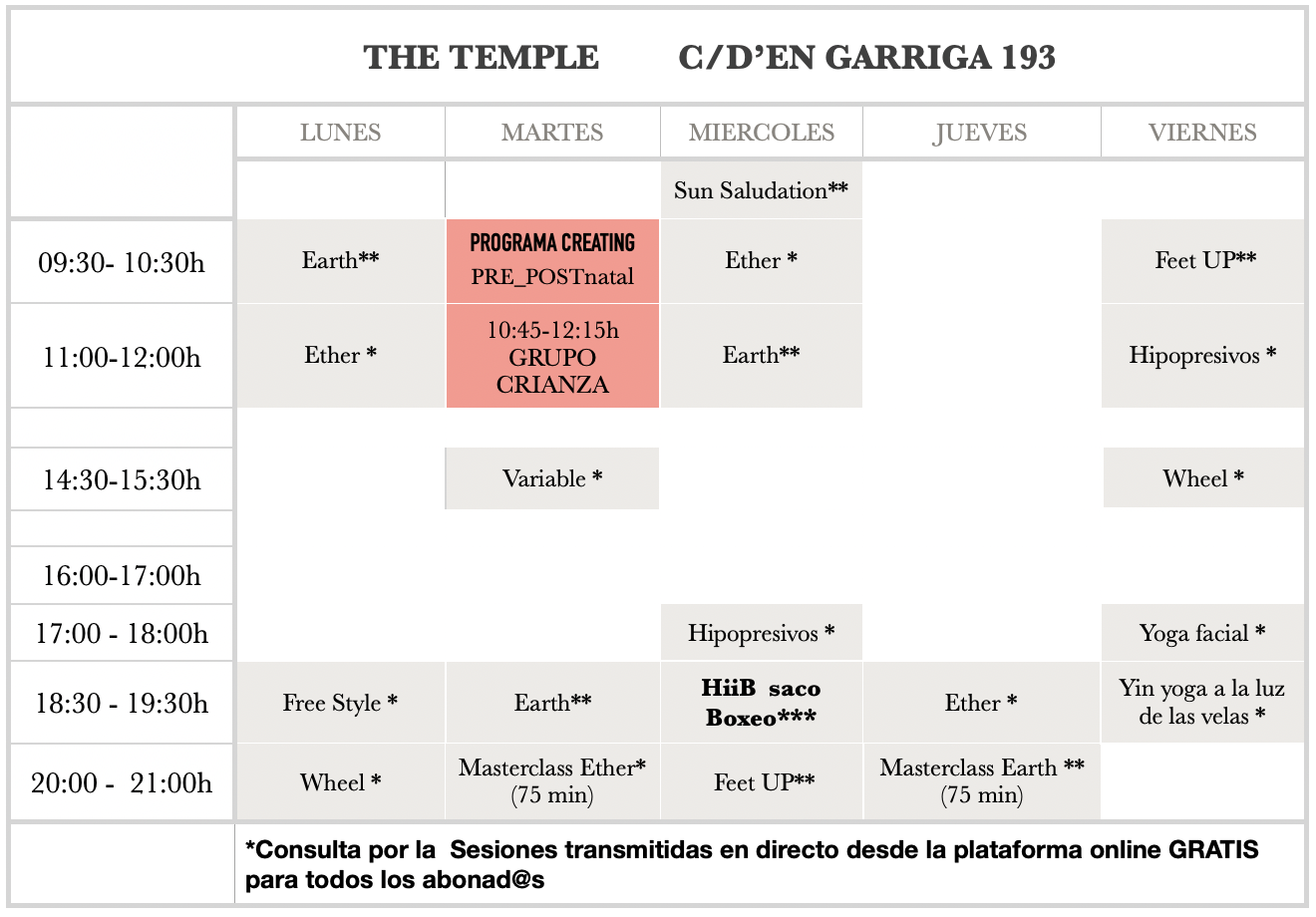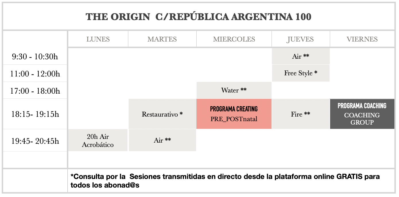 Grupo de crianza, sesión pre/postnatal mañana y sesión tarde prenatal o hipopresivos